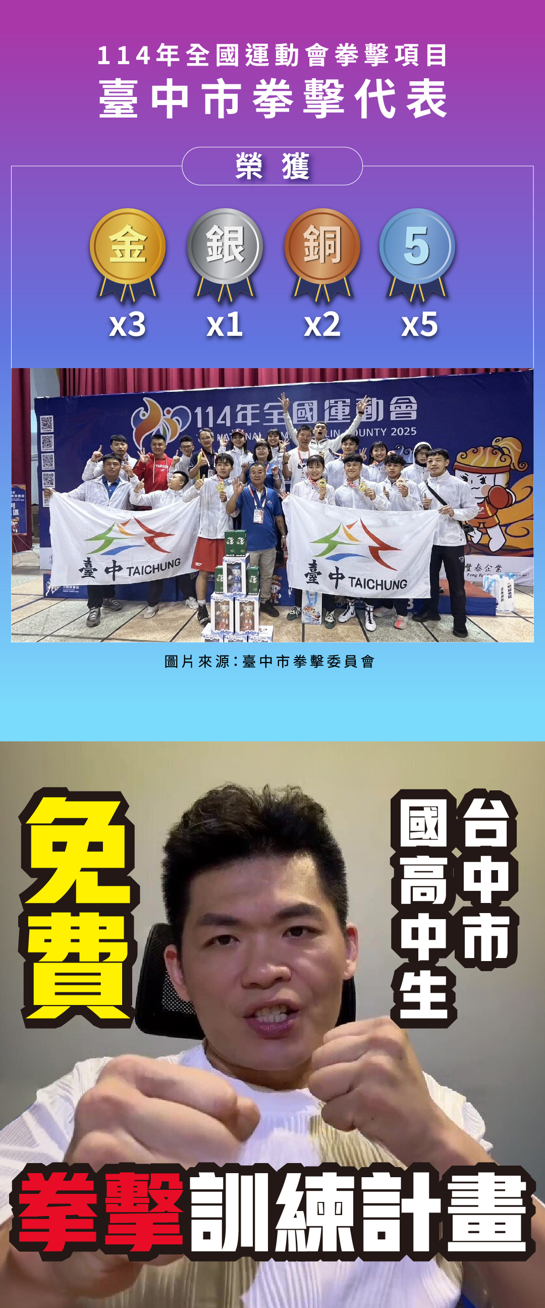 賀!臺中市拳擊代表 榮獲3金/1銀/2銅/5個第五名!