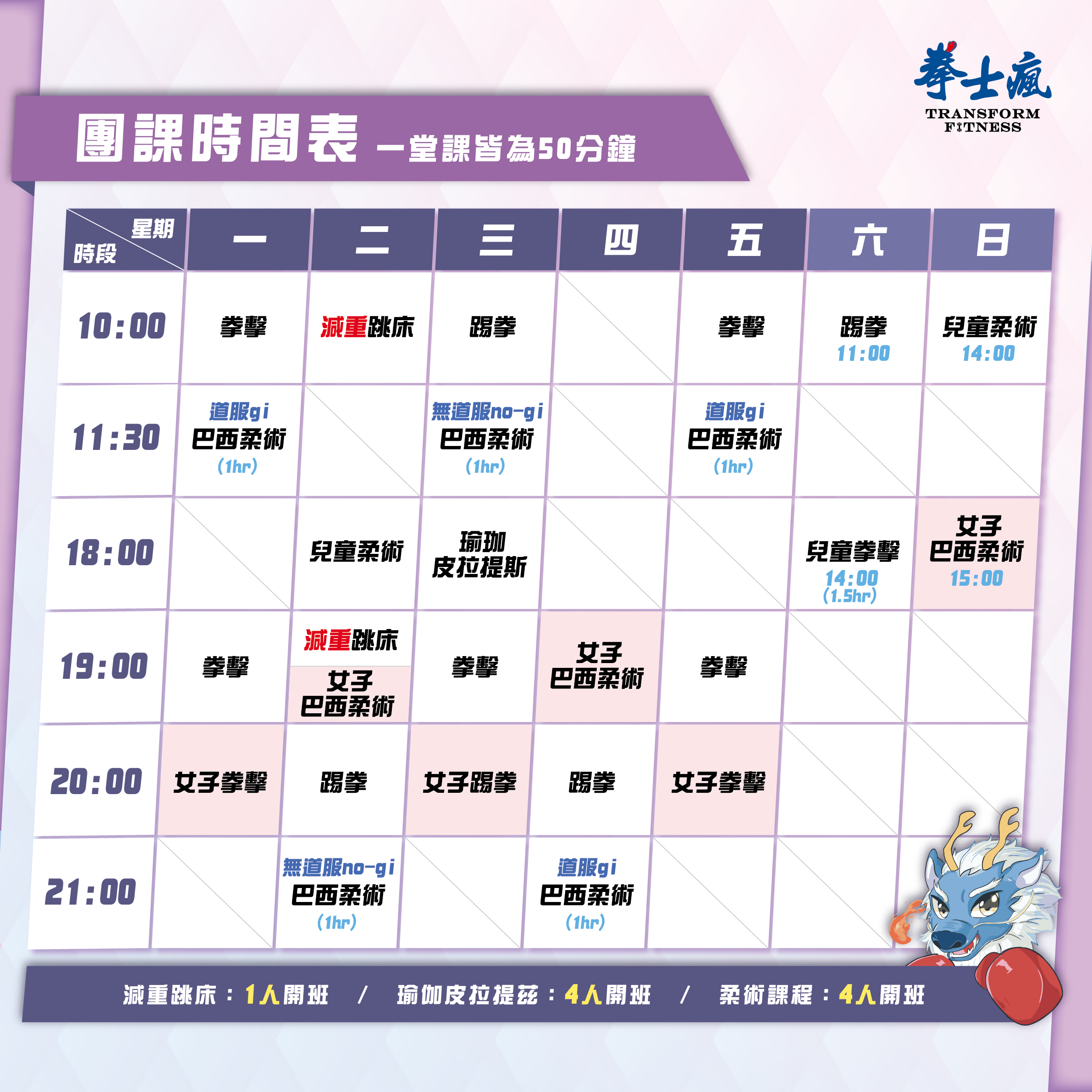 2025年拳士瘋團課時間表